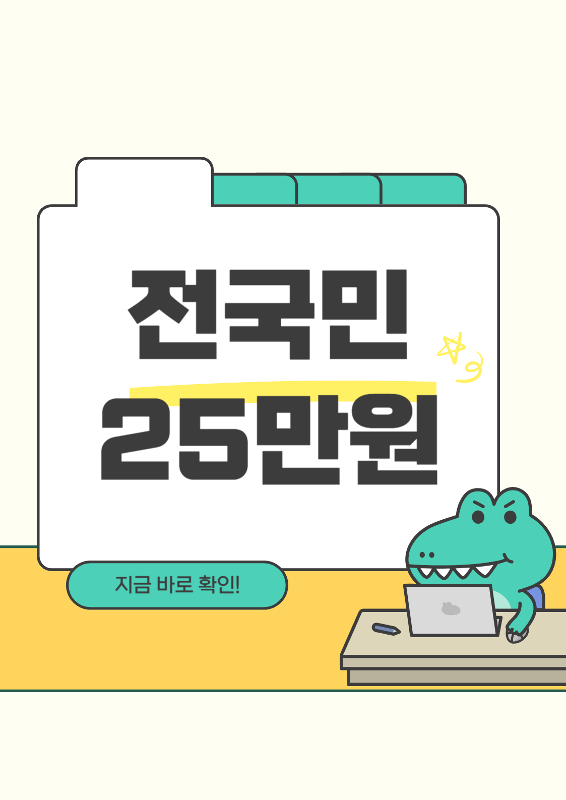대한민국 국민 모두 1인당 25만 원을 지급하는 지원금입니다. 경기 침체 상황에서 소득 보전과 내수 활성화를 동시에 겨냥한 보편 지원 방안으로, 지급방식은 지역화폐나 선불카드 등으로 지급할 예정이라고 합니다. 추경 통화 후 빠르면 2025년 9-10월 사이 지급이 예상되며, 신청방법 미리 알고 싶으신 분들은 아래 버튼 꼭 클릭하셔서 미리 확인하시기 바랍니다.